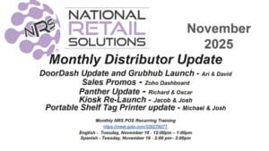 Spanish – 2025 Noviembre – DoorDash Update and Grubhub Launch – Sales Promos – Zoho Dashboard – Panther Update – Kiosk Re-Launch – Portable Shelf Tag Printer update