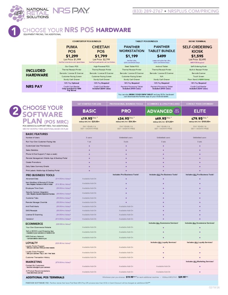 *All tobacco sales scan data programs are operated and maintained by tobacco manufacturers. Eligibility for the programs and all terms are determined by each manufacturer. For terms, contact the tobacco manufacturers. NRS provides a seamless data reporting service that helps retailers take advantage of tobacco sales programs. Programs may not be available in all states. Monthly fees based on number of plans and whether merchant bundles with NRS Pay processing services. Tax not included. NRS is not responsible for promotional payments and not liable for errors and omissions. By participating in the program, retailer assumes all responsibility for setup of promotions in accordance with manufacturer guidelines. NRS Pay is a service of National Retail Solutions, Inc. Contract required. National Retail Solutions, Inc. is a registered MSP/ISO of Elavon, Inc., Georgia, a wholly owned subsidiary of U.S. Bancorp, Minneapolis, MN. National Retail Solutions, Inc. is a registered ISO of Wells Fargo Bank, N.A., Concord, CA.
